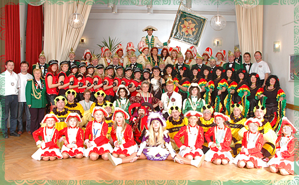 Elferrat, Prinzengarde, Tanzmariechen, mittlere Garde, Kindergarde, Lollipops, Damengarde, Männerballett und Grüne Garde.