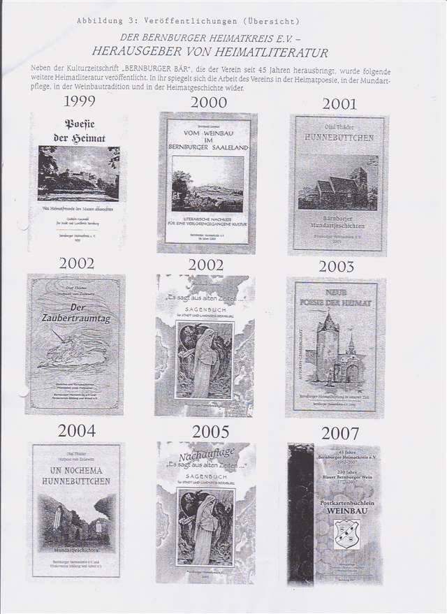 Neben der Zeitschrift "Bernburger Bär ..." veröffentlicht der Verein seit 1999 zu gegebenen Anlässen weitere Heimatliteratur in Broschürenform.
