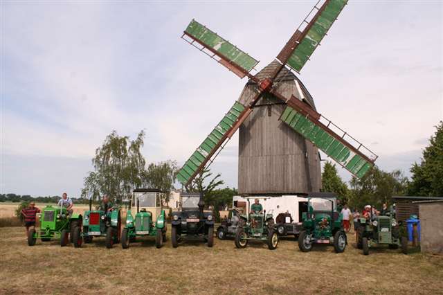 Die Bockwindmühle Pömmelte wurde um 1870 vom Hummelberg Schönebeck im damaligen Salzelmen nach Pömmelte umgesetzt und 1876 von Herrn Louis Berger gekauft. sie ist seit dem im Besitz der Familie Berger. Bis Anfang der 50er Jahre konnte die Mühle mit Wind, seit den Dreißigern mit einem Körting-Dieselmotor und seit den 40ern elektrisch betrieben werden. Bis in die 70er Jahre hinein wurde noch mit Motorkraft geschrotet.