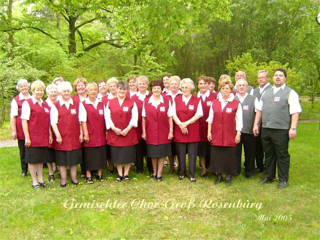 Der gemischte Chor Groß Rosenburg hatte sich schon am 10.10.1981 zusammengefunden. Als Michael Pietschker den Chor übernahm integriere sich die gesamte Gruppe in den Rosenburger Kultur- und Karnevalsverein. Volks- und Heimatliederlieder gehören genau so zum Programm wie gesellige Programme im Frühjahr, Herbst oder zur Weihnachtszeit.